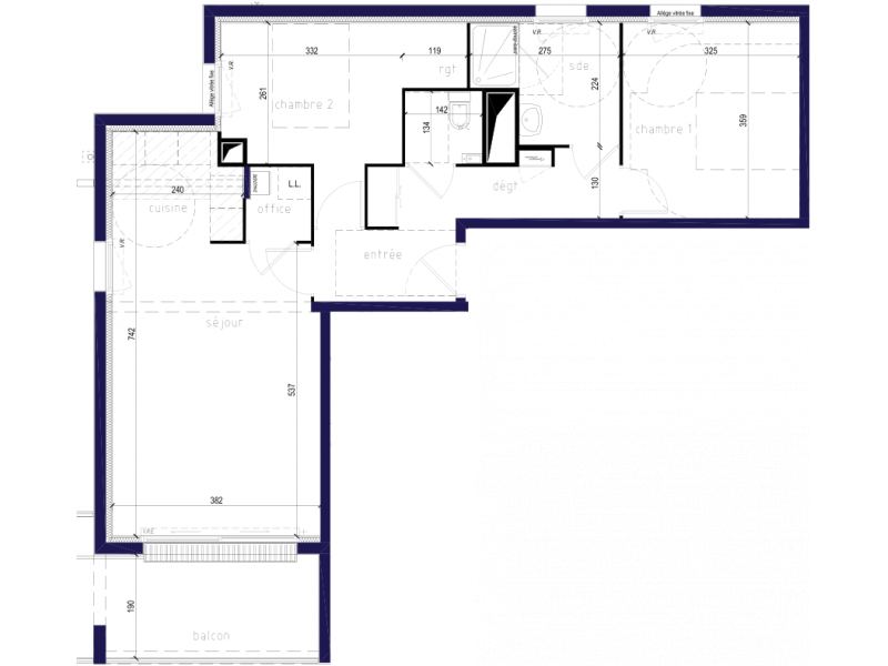 Les logements disposent d'une cuisine ouverte sur le séjour, d'une salle d'eau, de une à deux chambres, un cellier et d'un balcon.